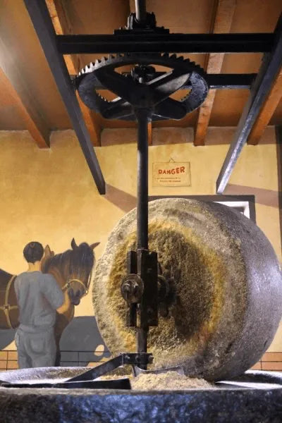1. The walnuts are crushed using a millstone (this exerts a pressure of about 1.6 tons).